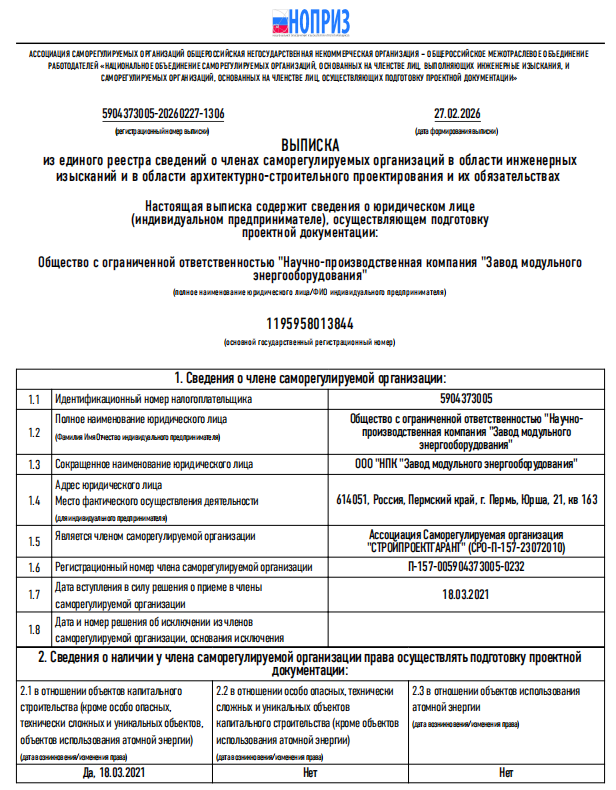 Лицензии и сертификаты Группы Компаний НПК «Завод модульного энергооборудования»