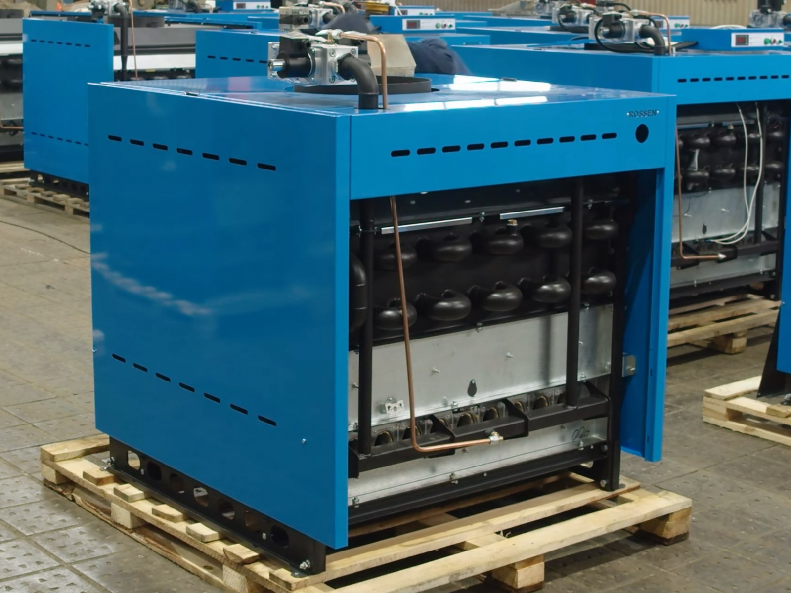 Котел RSA 80 имеет открытую топку и оборудован атмосферной горелкой. Теплообменник производится на Заводе Rossen, выполнен из оребренных труб с увеличенной поверхностью теплоотдачи.