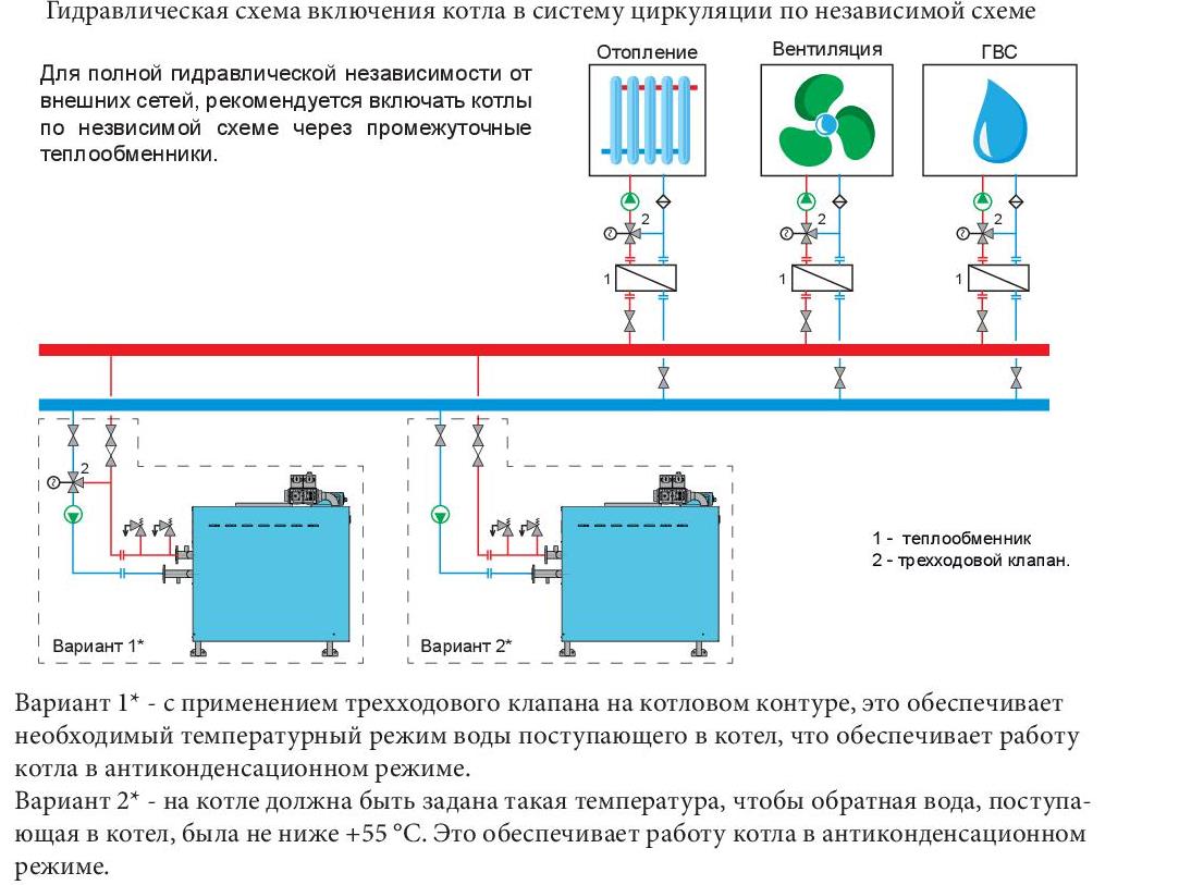Гидравлическая схема подключения котла RSA по независимой схеме