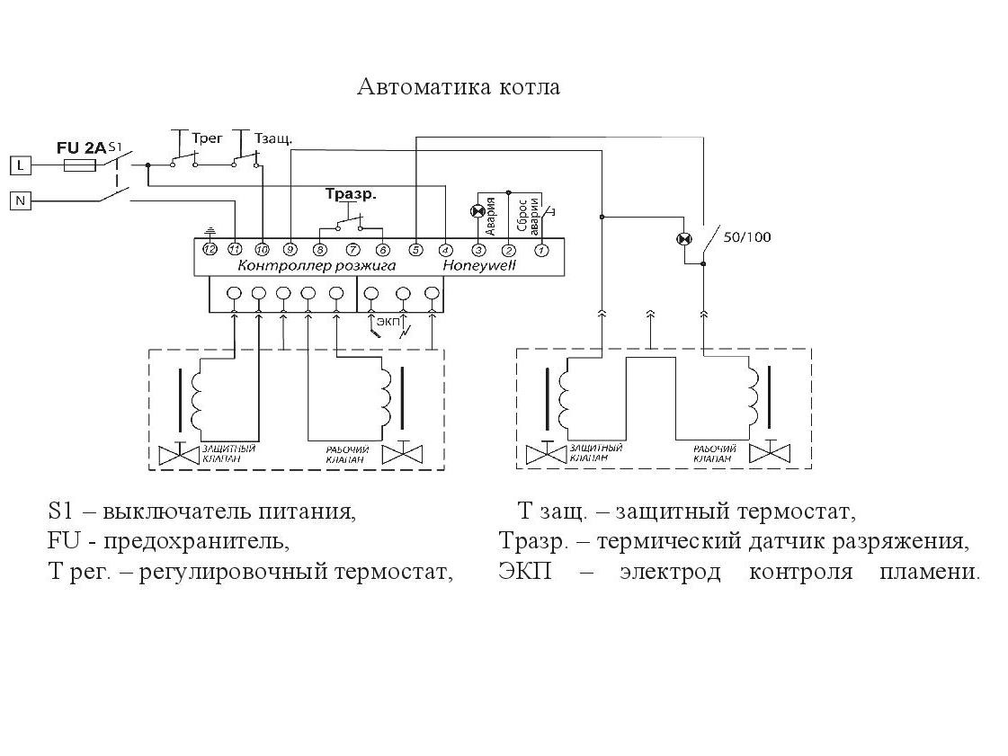 Устройство автоматики котла RSA 80 и схема электрических соединений