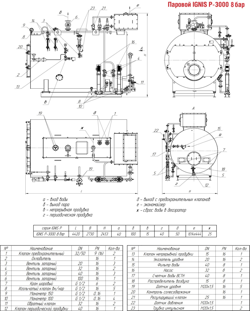 Технические характеристики парового трёхходового котла ARCUS IGNIS P-3000