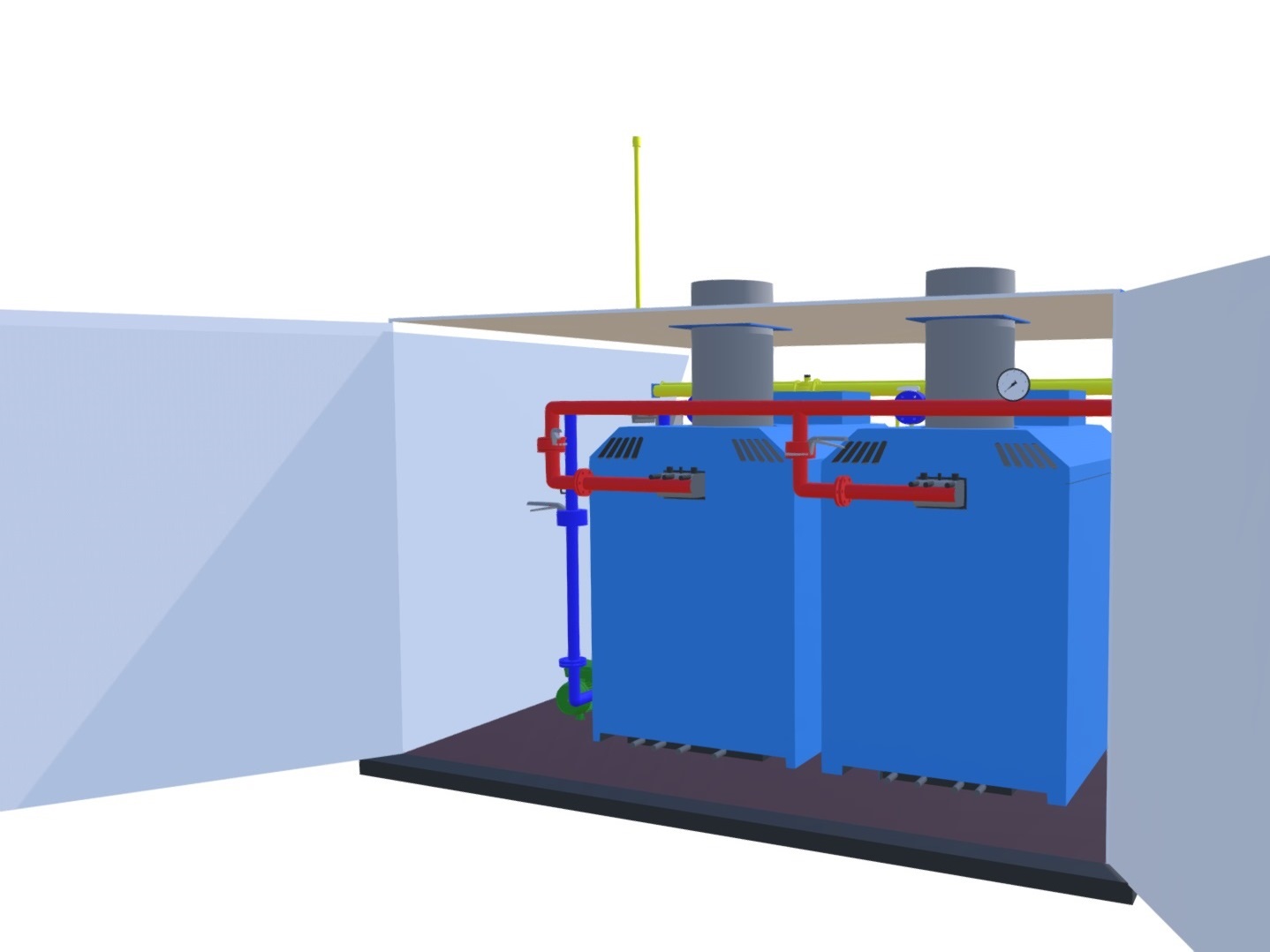 Для предприятий при установке наружного котла проектируется и монтируется индивидуальный тепловой пункт котельной заводского изготовления.