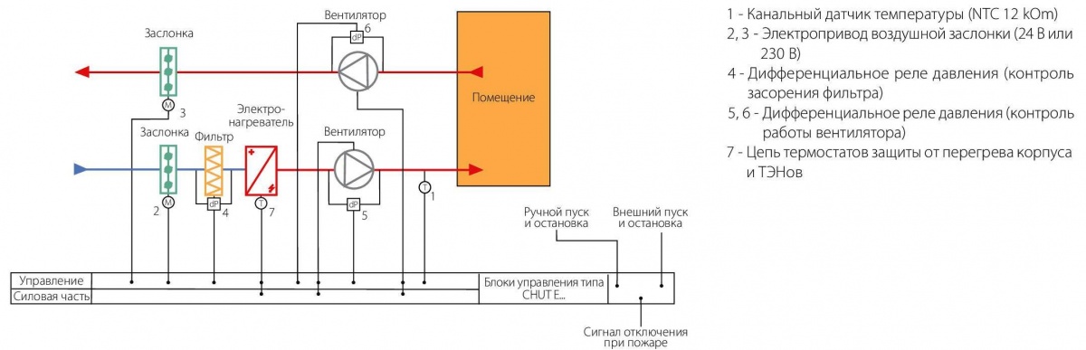 - Подключение электрических воздухонагревателей суммарной мощностью до 9 кВт;