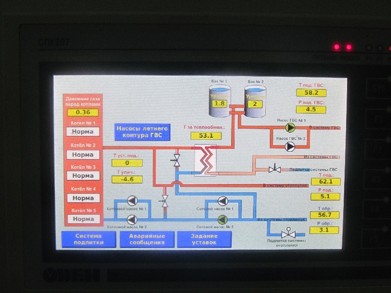 В завершение проверяем работу системы в ручном и автоматическом режимах, автоматическое переключение котельной на резервные насосы/котлы, переход на резервное питание.