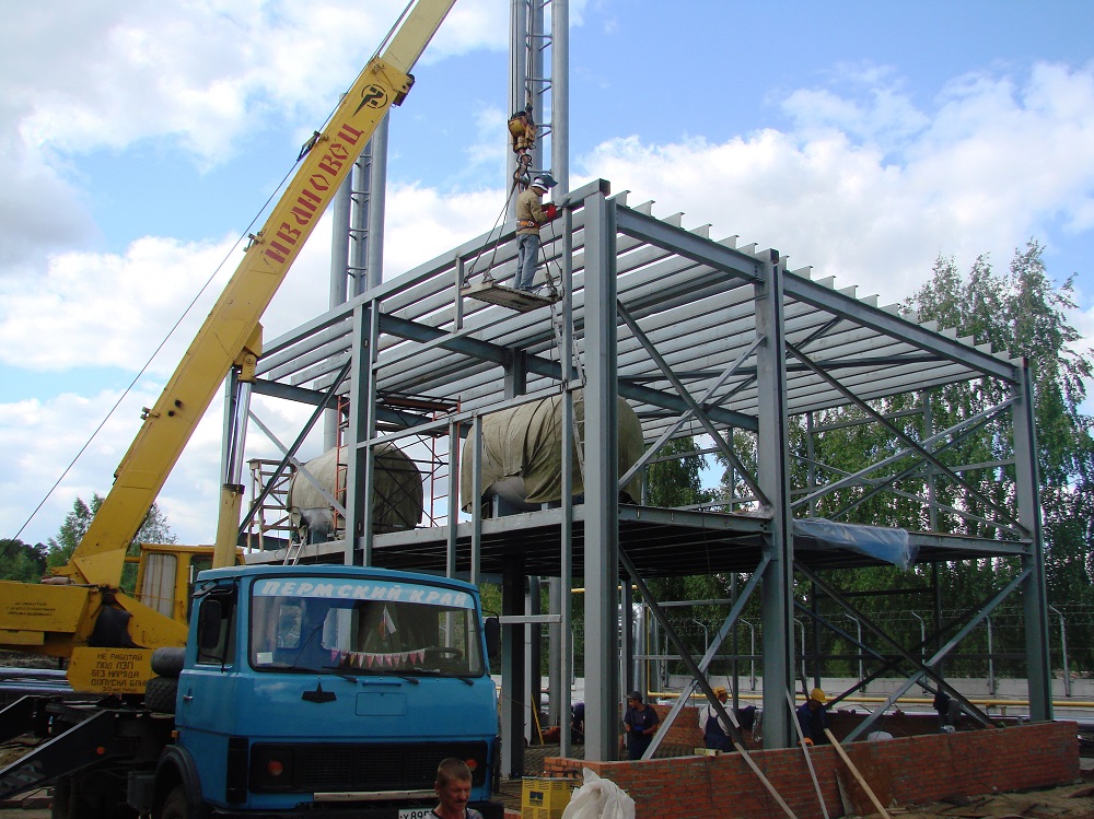 Строительство включает в себя весь перечень общестроительных работ, а также работы по устройству котельного оборудования, наружных и внутренних сетей, установку дымовых труб котельной.